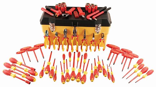 These insulated softwares are 1,000-volt rated and 10,000-volt tested for maximum safety and efficiency. Meets OSHA, VDE, ASTM, EN/IEC, CSA, NFPA. Features high-qualtiy cast CV tool metal, heavy accountability steel-riveted joints, a multi-layered hard-chromed end, and erogonomic, molded cushion grip handle. In a rugged 23" device field, this set embraces:8" insulated long nose pliers, eight.9" insulated Lineman's pliers with crimpers, 6.3" insulated diagonal cutter, 8" insulated excessive leverage cutter, 6.3" insulated stripping pliers, 8" insulated cable cutter, 6.3" insulated flat nose pliers, eight" insulated adjustable wrench, Insulated slotted drivers: 2mm, 2.5mm, 3mm, fourmm, 4.5mm, 5.. ... Read more 66 pc. Insulated Tool Set