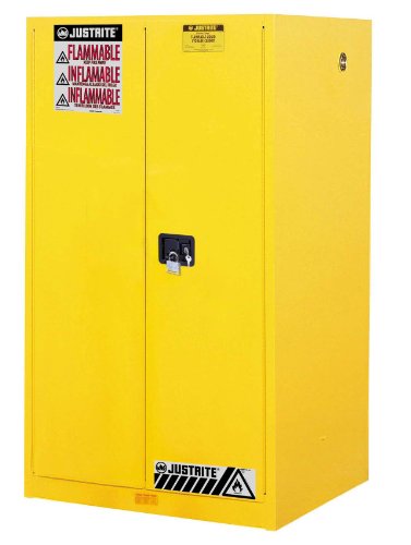 compliant to OSHA and NFPA and most are FM authorized.3-point locking machine with high power chrome steel bullet latches.U-Loc padlockable paddle deal with.SpillSlope Safety Shelves.Haz-Alert Reflective Labeling. Sure-Grip EX embraces New Exclusive Features to make a place of work Extra safe, Extra Secure. U-Loc Padlockable Handle, Haz-Alert Reflective Labeling, SpillSlope Safety Shelves.. ... Read more Justrite 896000 Sure-Grip EX (H x W x D): 65 x 34 x 34 Inch, 60 Gallon, 2 Door, Manual Close Flammable Safety Cabinet